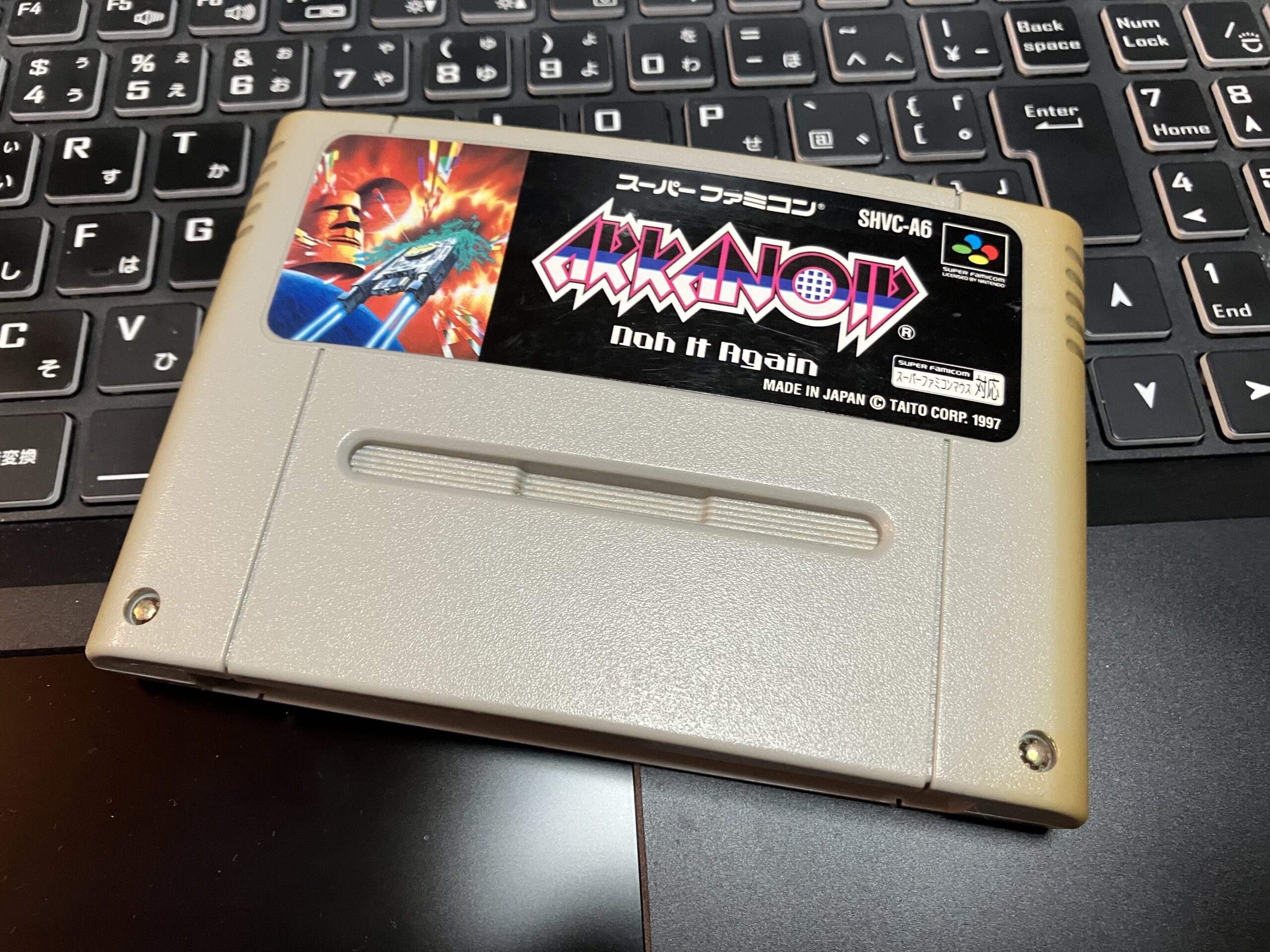 そんなアルカノイド Doh It Again、2026年2月現在はプレミアは付いておらず箱説明書付きでも結構お買い得な価格で買える状態ですがこのDoh It Againって移植されているのがWindowsの95や98の頃のPCゲームのみで配信はされていないんですよ。そして1997年というスーパーファミコン末期のゲームソフトなので出荷本数が大分少ないようです。