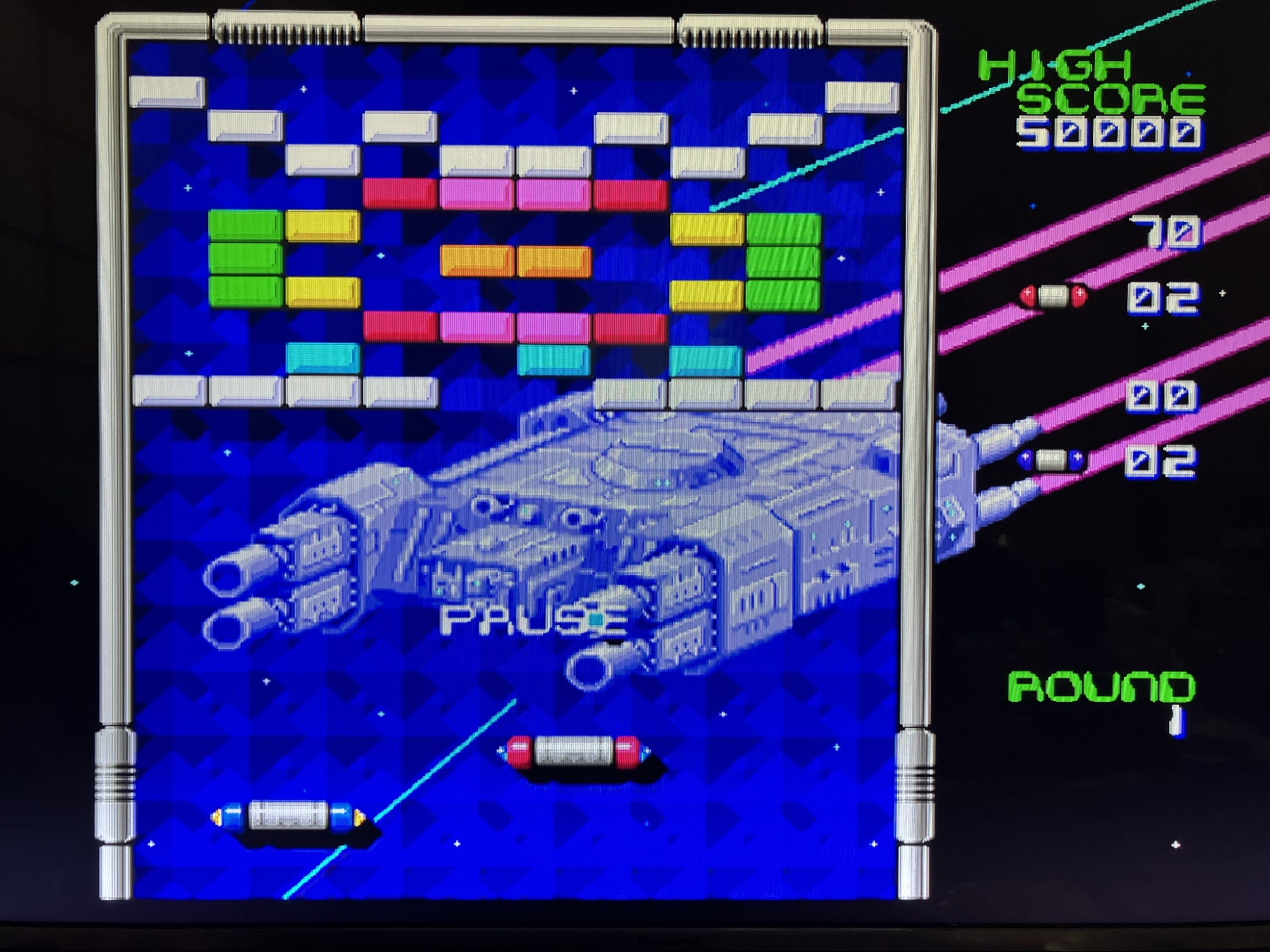 アルカノイドを二人同時プレイできるんです。アルカノイドって様々な続編、移植作がありますが二人同時プレイはアーケード3作目のアルカノイドリターンズと任天堂Wiiで配信されていたアルカノイドプラス等、あまり無いそうです。わたしの様にあまりブロック崩しが得意じゃない人は誰か捕まえてワイワイやりながら99面を目指した方が楽しいですよねきっと。