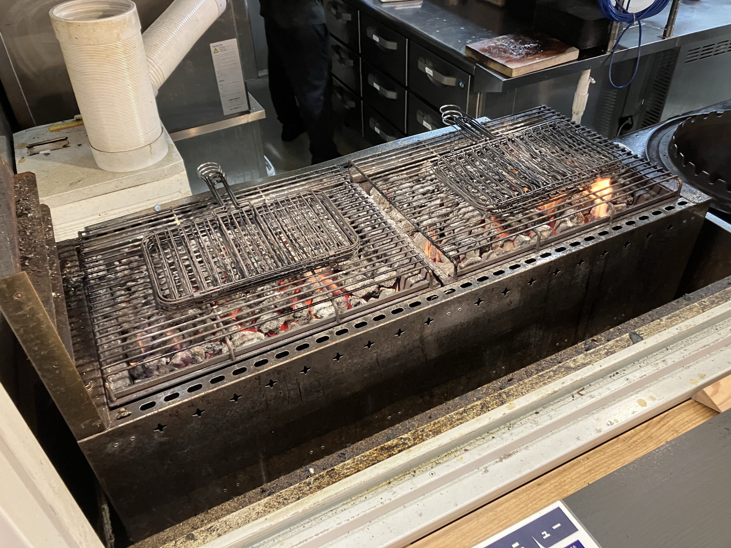 600℃以上の温度になるという溶岩が使用されている焼き台。人に焼いてもらう魚ってなんでまたあんなに美味しいのだろう。